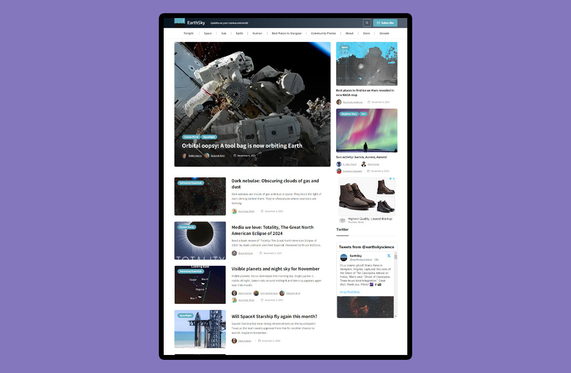 EarthSky is a world leader in bringing the voices of scientists directly to its audience and millions of others across the globe since 1991. With over 5 million visitors per month, EarthSky partnered with us to create the newest version of their website and a refresh on marketing materials.